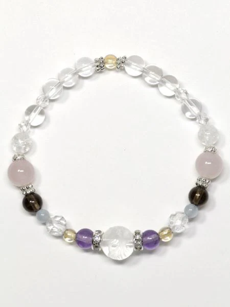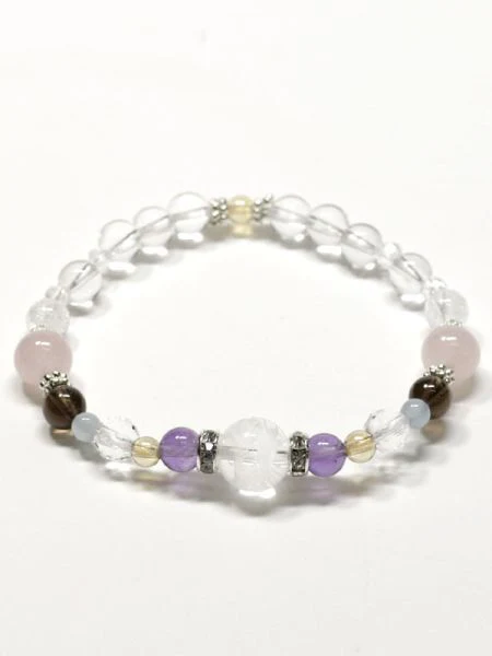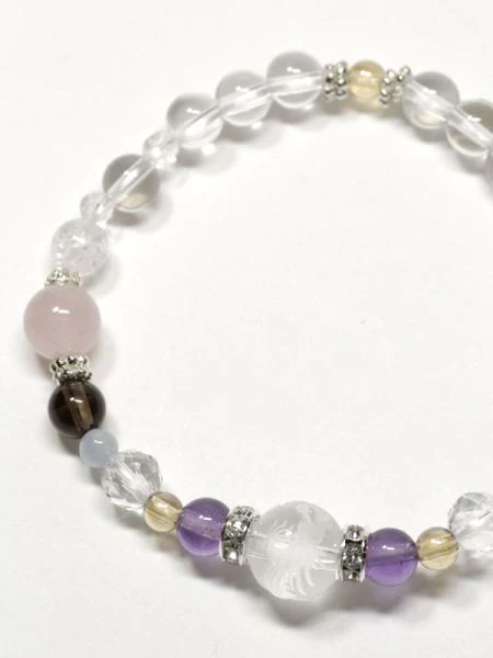 La boule parentale est ornée d’un cristal avec une sculpture de dragon et est combinée avec de magnifiques pierres naturelles. Les rondelles étincelantes donnent une impression féminine et élégante. Ce produit utilise des pierres naturelles qui ont été colorées en fonction du type. Quartz rose, cette pierre est censée faire ressortir la beauté naturelle d’une femme et nourrir des sentiments bienveillants. On dit qu’elle conduit à l’accomplissement de l’amour.