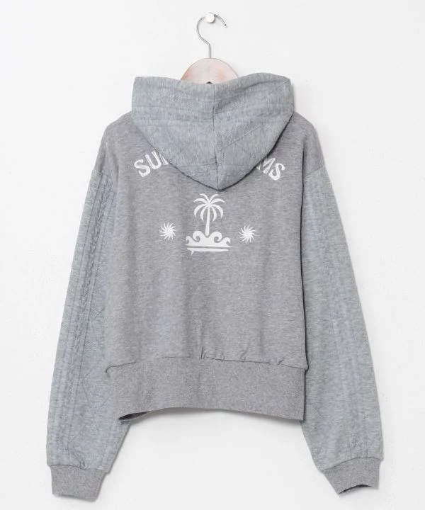 Sweat à capuche avec motif tridimensionnel sur la capuche et les manches. Le dos est orné d’une combinaison de broderie et d’imprimé floqué. Son design sportif est idéal pour les activités sportives. Silhouette élégante avec ourlet ajusté. Également recommandé en complément d’une jupe.