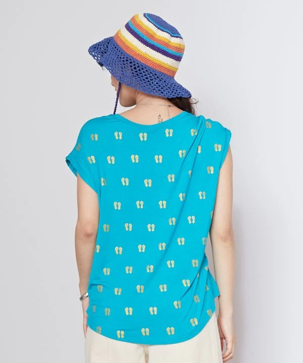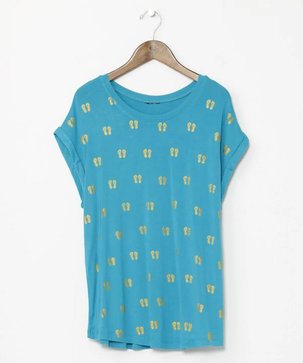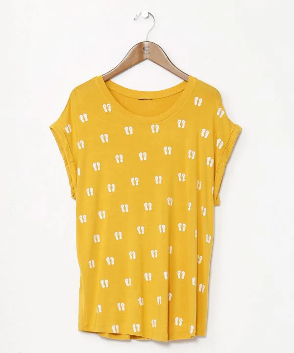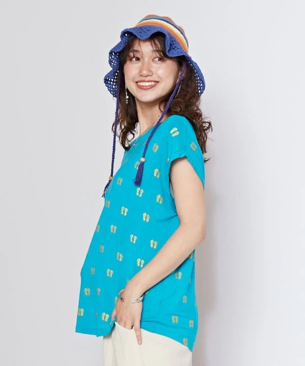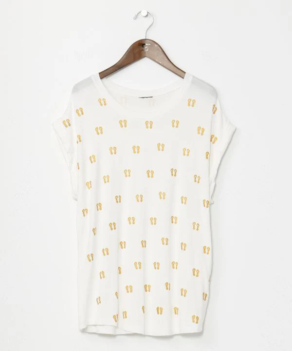 Sélectionné avec amour en Thaïlande, ce t-shirt présente une coupe légère et décontractée. Son imprimé sandale pop lui confère un look unique. Son col large et ses manches courtes le rendent agréable à porter.