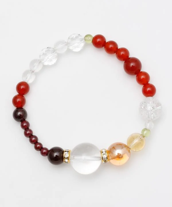 La combinaison de gros cristaux et de pierres aux couleurs vives crée une présence unique. Ce produit utilise des pierres naturelles colorées selon leur type. Le grenat est la pierre de naissance du mois de janvier. On dit qu’il donne le courage de s’aventurer avec audace vers l’extérieur et de mener ses efforts constants vers le succès.