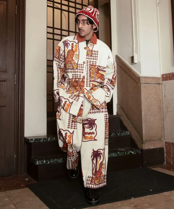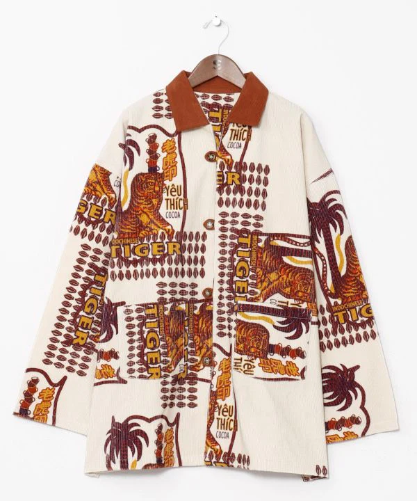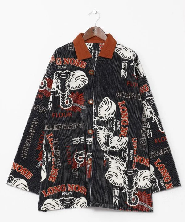 Cette chemise pour homme est confectionnée dans un velours côtelé chaud et épais, qui peut également servir de veste. Son motif textile rétro-oriental, inspiré des thèmes de la civilisation et des Lumières, mêle les cultures étrangères et japonaises.