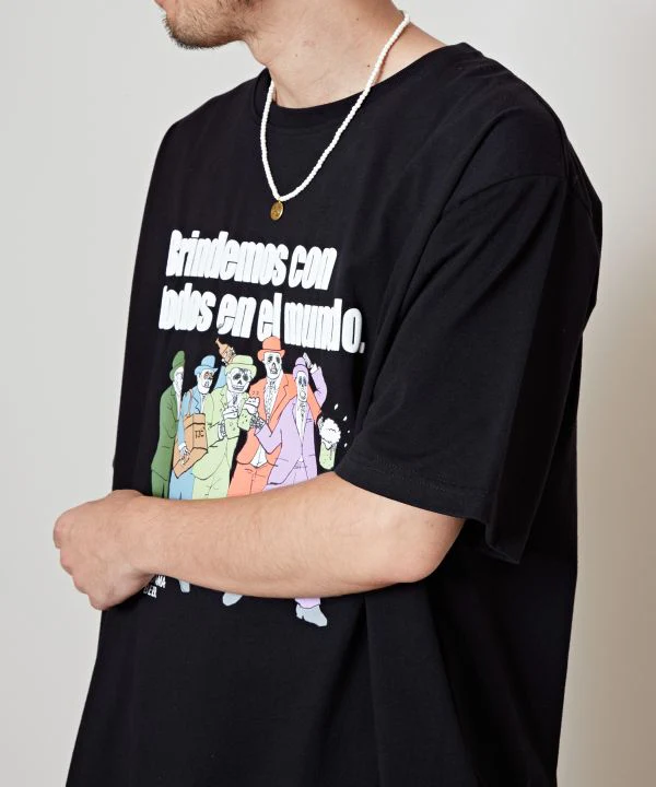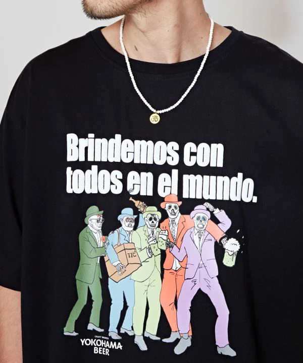Amina Projet de collaboration x grn x Yokohama Beer. Ce t-shirt pour homme présente un design accrocheur avec le Calavera Five imprimé dessus. Cet article est disponible en tailles L/XL et peut être porté confortablement.